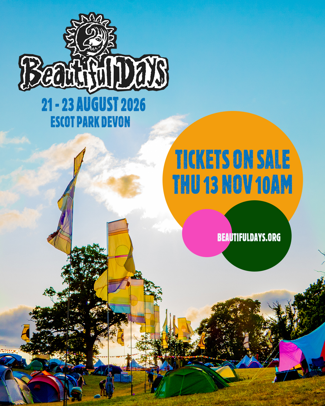 Beautiful Days is the Levellers’ family music festival organised by DMF Music since its inception in 2003. Proudly independent, Beautiful Days has no sponsorship or funding. We have entertainment across 6 stages plus The Magic Teapot, Site Art installations, a huge Children’s Area, Kanga Wellbeing, Walkabout Theatre, family camping, real ale bars from Otter Brewery, Folk Sessions and a vast selection of carefully chosen food & craft stalls. Tickets for BD2026 will go on sale on 13 November, line-up will be announced in the New Year.